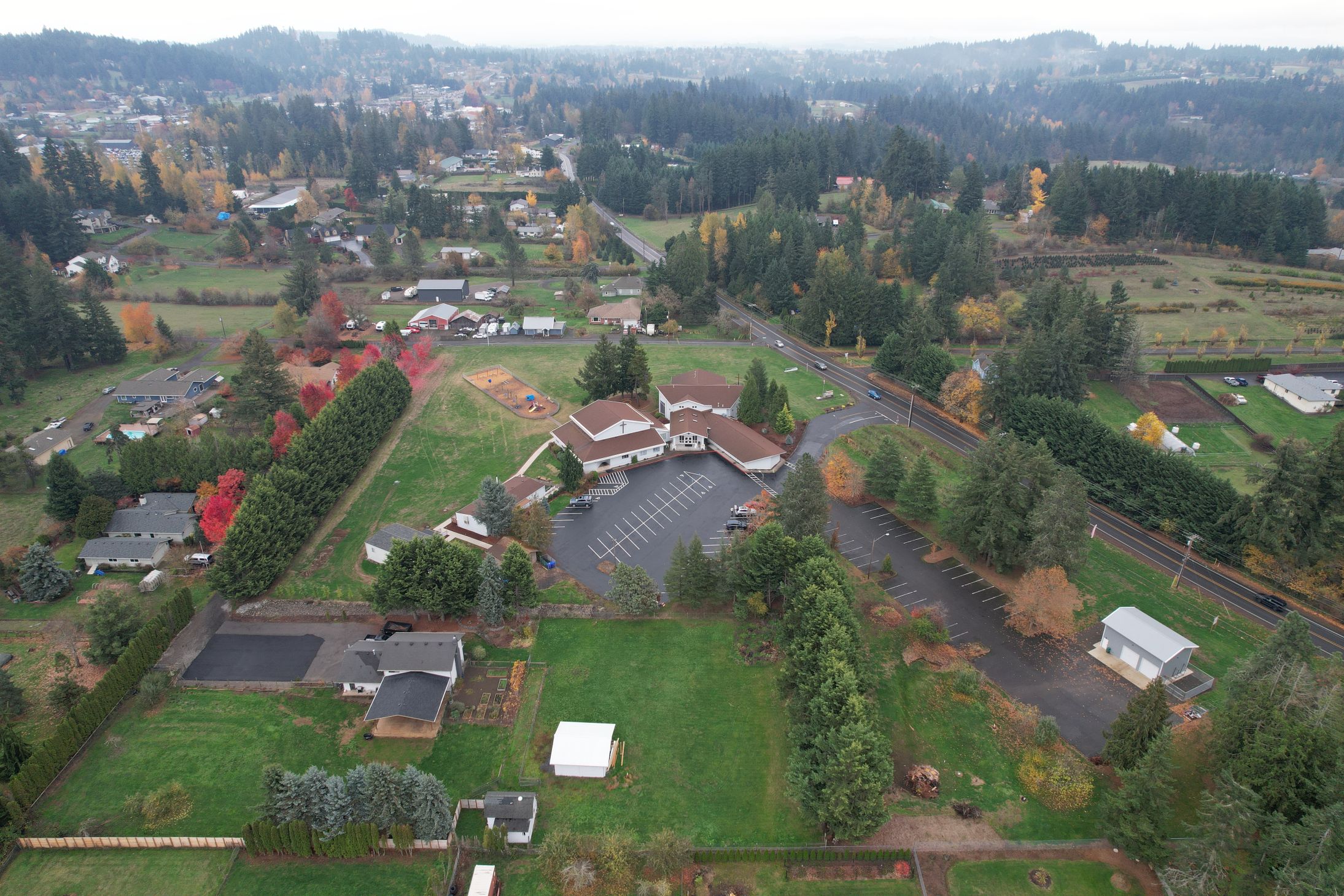 The school is located on five acres of land, including several acres of grassy fields and a fenced in playground for our youngest students. There are a variety of fruit trees and grapes on the property, in addition to a children’s garden where young gardeners explore and learn about planting. Students have access to wide open play areas safely tucked away from traffic and parking lots. In addition to the vast outside play space, there is a large indoor multipurpose room used for rainy day recess, fellowship time and school events. Students attend chapel in the church sanctuary weekly or bimonthly depending on grade level.